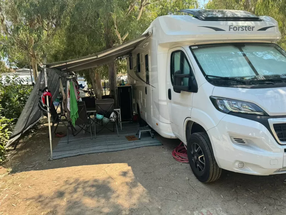 Kempování tady je čistá radost. Sardinie je na obytný vozy perfektně připravená. Každý kemp má vodu, výlevky, sprchy, prádelnu, a když ti něco chybí, většinou ti to ochotně půjčí. Cena se pohybuje kolem 50–60 eur za noc, podle lokality. Jestli nechceš platit za kemp, zkus aplikaci Stellplatz – najdeš tam i místa, kde můžeš stát „na divoko“, legálně a v klidu.